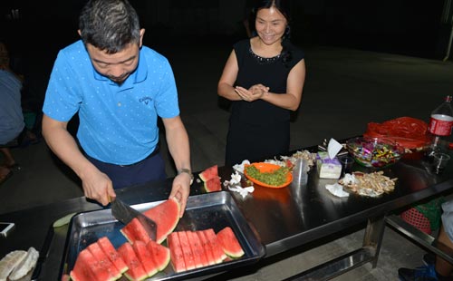 接著壽星們說出了自己的人生目標(biāo)和目前狀況,表示自己將繼續(xù)埋頭苦干,拼命硬干,先是要對(duì)得起自己,再者要報(bào)效公司。下一個(gè)環(huán)節(jié)是表演節(jié)目,壽星們更是破桑大唱,似乎喊出了自己此時(shí)無盡激動(dòng)的心情,歌聲欲振旁林之樾,辛總也跟著傾情演唱,意氣高昂,蕩氣回腸,為生日晚會(huì)聲威助陣,把生日會(huì)的氣氛推向了高潮。